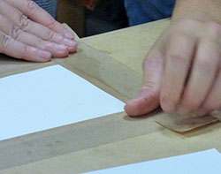 Lieve nous explique comment tendre notre papier pour le travail à l’aquarelle.