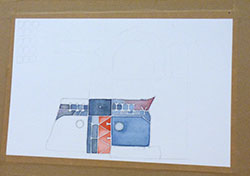 Un beau dossier sous le bras, une planche pour tendre notre papier, de bons pinceaux et nos aquarelles, nous voilà parés pour cette rencontre avec Adolf Bernd grâce à Lieve Cornil.