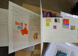 Comme notre travail fera partie d’un petit carnet relié, c’est juste avant de clore ce premier jour que nous choisissons les couleurs de nos couverture et papier accordéon.