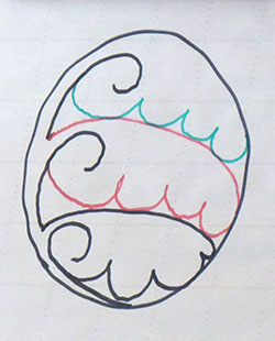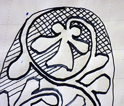 Accrocher notre modèle à bonne hauteur et repasser sur les traits. Pas n’importe comment, non ! Avec les explications de Louise, cela devrait le faire. ![]() |