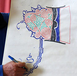 Une nouvelle approche avec la technique de Gabriela Soba : manier le pinceau chinois, le tire-ligne, l’argentine-pen et relier son travail.
