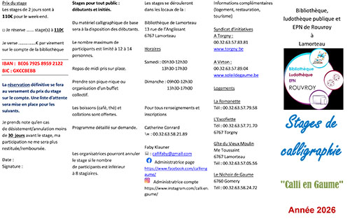 Pour toutes informations et inscriptions: courriel@calligraphie-genevieve.be